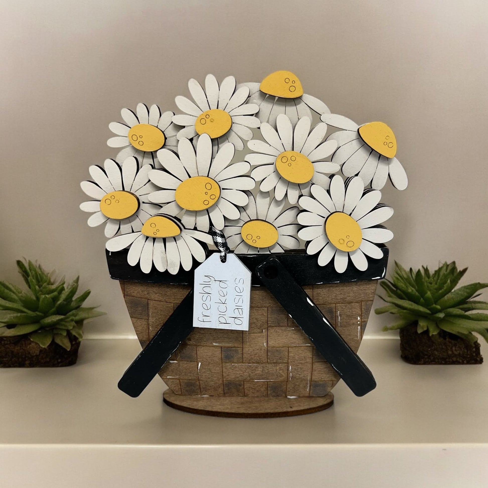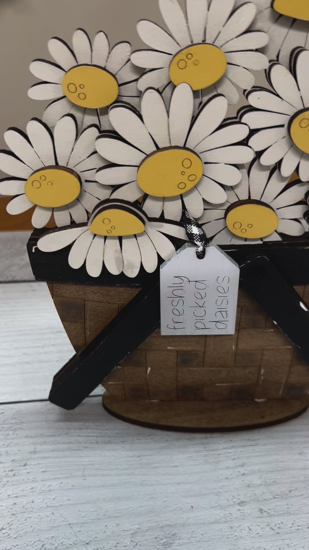 This super cute basket will keep your decor ready for every season! Change out the contents of the basket with toppers for any occasion you would like to celebrate!
